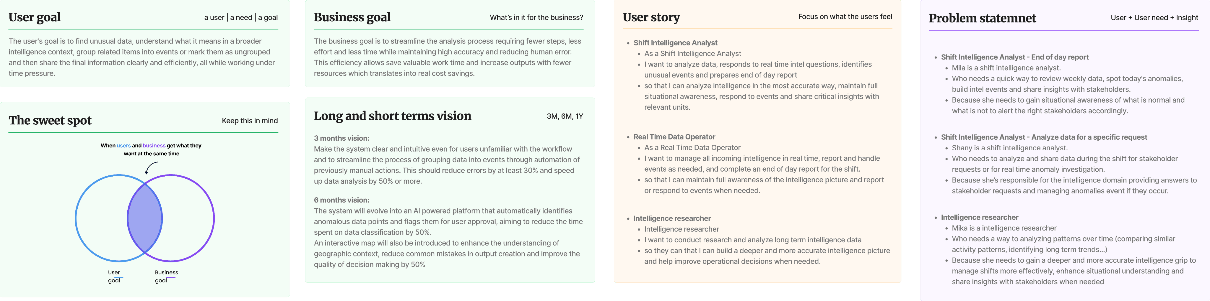 The Evolution system is a military data platform used daily by analysts to manage and classify operational inputs. The original system was unintuitive, time consuming and not user-friendly. Users had to memorize complex workflows, switch between disconnected tools and operate without clear support from the interface.