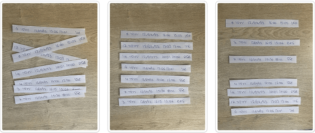 But when I asked them to group printed signals on paper, they were suddenly able to describe how they did it - usually based on a short time range (up to 5 minutes) and only when there were at least 3 signals.